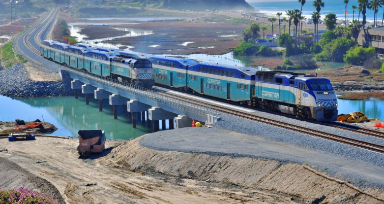 San Elijo Lagoon Double Track Project added 1.5 miles of second mainline rail track and replace an aging timber rail bridge on the Los Angeles– San Diego–San Luis Obispo (LOSSAN) coastal rail corridor between the cities of Encinitas and Solana Beach. The new track extends between Cardiff-by-the-Sea and the southern border of the San Elijo Lagoon, resulting in 4.2 miles of continuous double track. The previously existing single-track bridge, built in the early 1940s was replaced with a modern, double-track concrete bridge. Other elements of the project included signal and grade crossing improvements at Chesterfield Drive in Cardiff, two new rail crossovers, the construction of a retaining wall north of the lagoon to keep the rail tracks separated from the lagoon inlet, and track and signal improvements south of the Solana Beach train station.